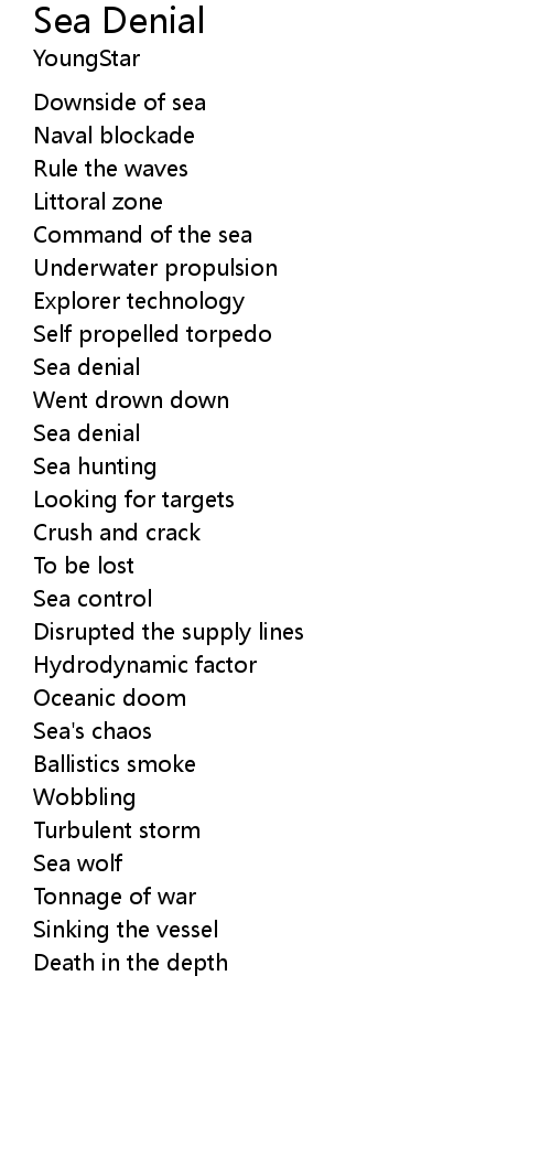 | Song | Sea Denial |