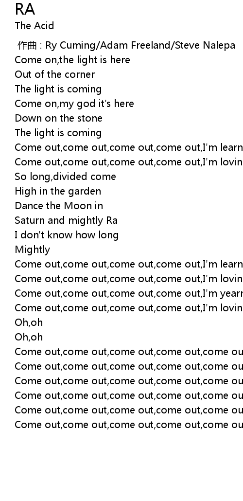 | [03:15.03] | Come out,come out,come out,come out,come out |