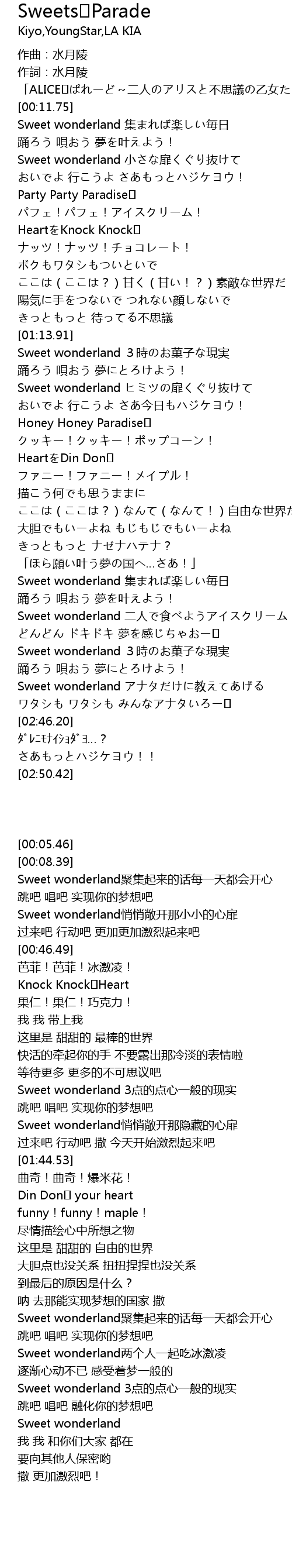 | [02:14.87] | Sweet wonderland 集まれば楽しい毎日 |