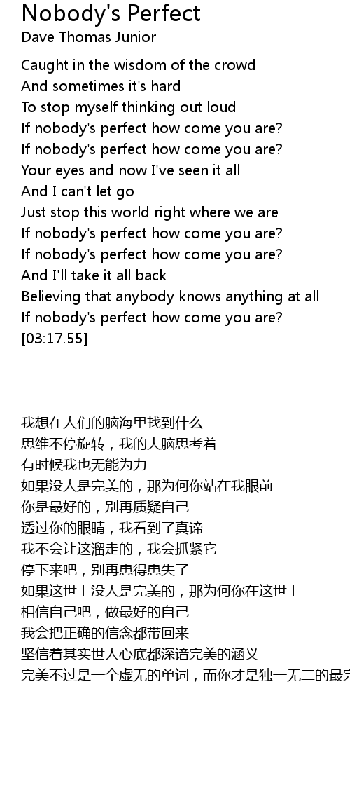 If nobody's perfect how come you are? |