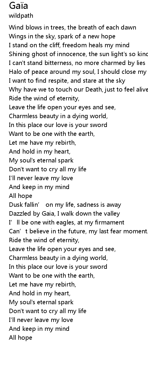 | [03:25.48] | Dazzled by Gaia, I walk down the valley |