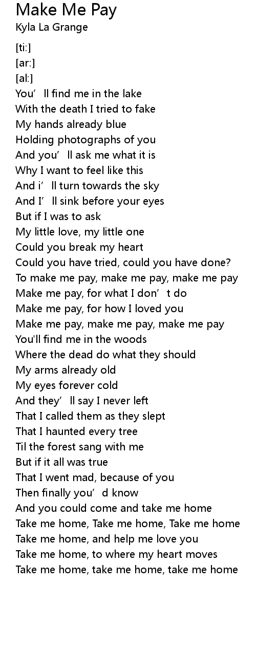 | [01:54.67] | Make me pay, make me pay, make me pay |