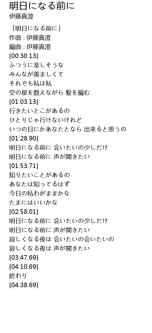 | [02:58.66] | 明日になる前に 会いたいの少しだけ |
