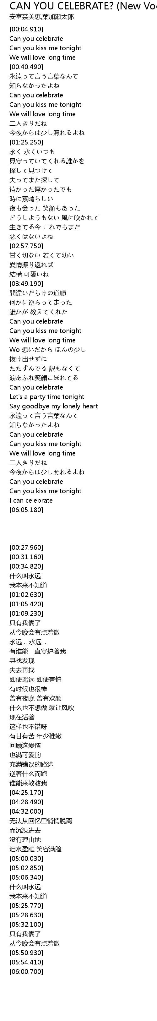| [05:00.030] | Can you celebrate |