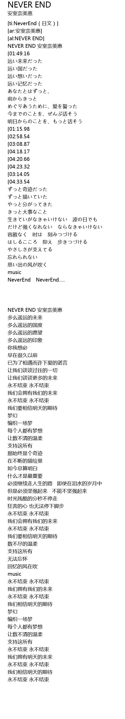 | [00:01.09] | NEVER END 安室奈美惠 |