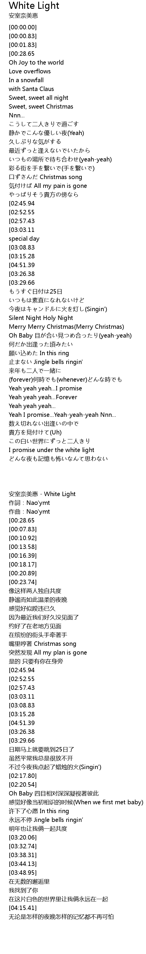 | [01:58.26][03:29.66][05:01.05] | I promise under the white light yeah |