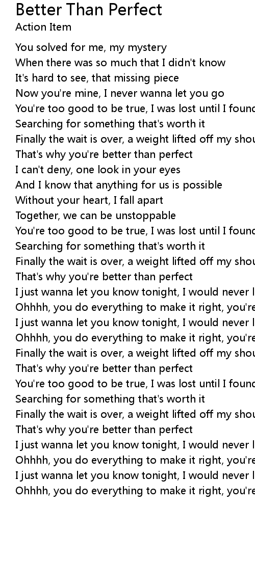 Ohhhh, you do everything to make it right, you're better than perfect |
