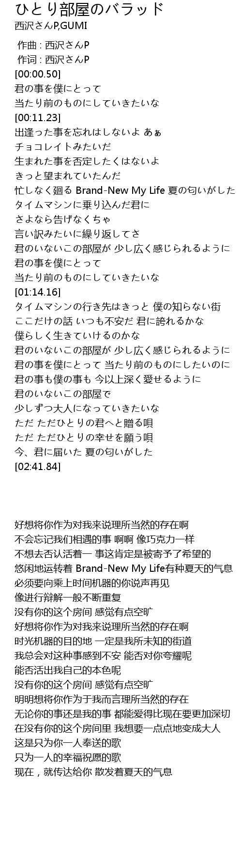 | [00:00.16] | 作词 : 西沢さんP |