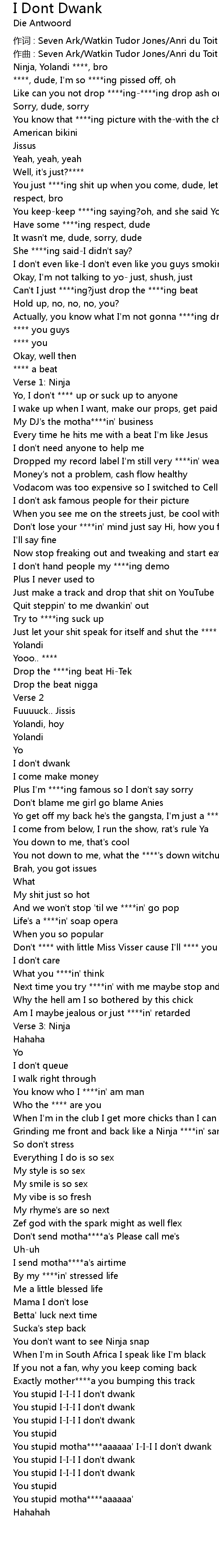 | You stupid motha****aaaaaa' I-I-I I don't dwank | |