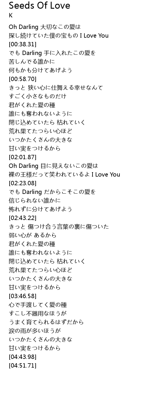 | [03:59.74] | 心で手渡してく愛の種 |