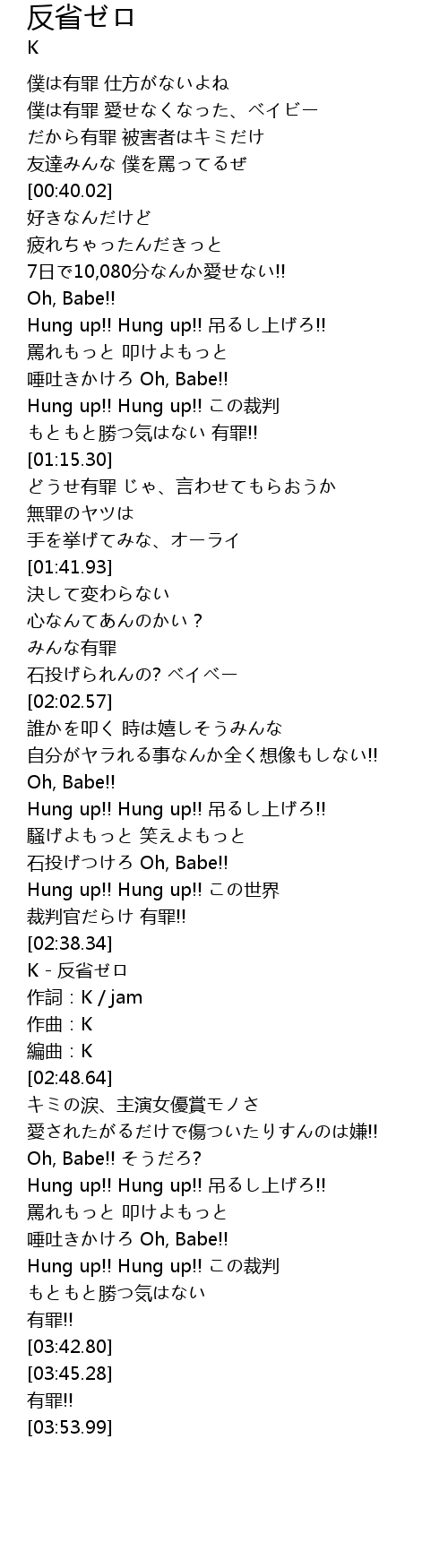 | [02:39.62] | K - 反省ゼロ |