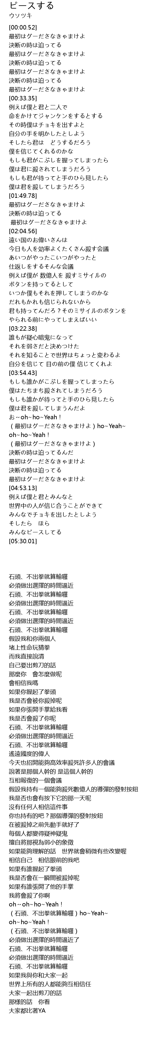 | [04:32.06] | (最初はグーださなきゃまけよ) |