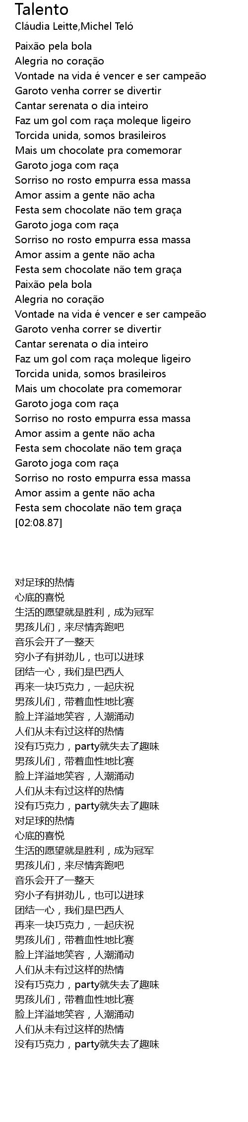 | [00:38.22] | Festa sem chocolate n o tem gra a |