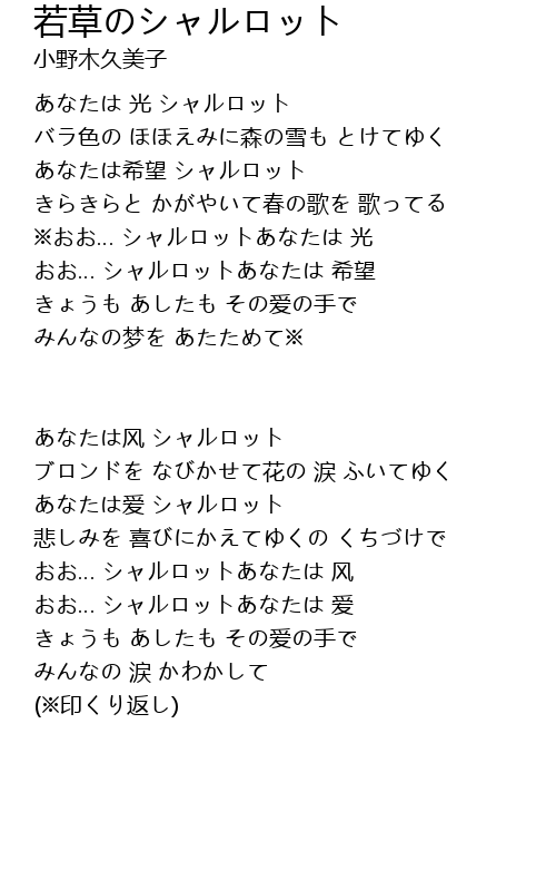 | ブロンドを なびかせて花の 涙 ふいてゆく | |