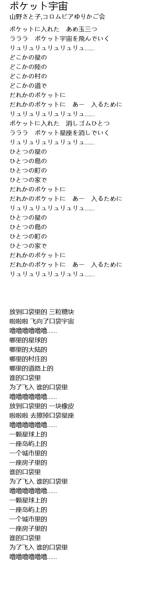 | [00:10.35] | ラララ ポケット宇宙を飛んでいく |