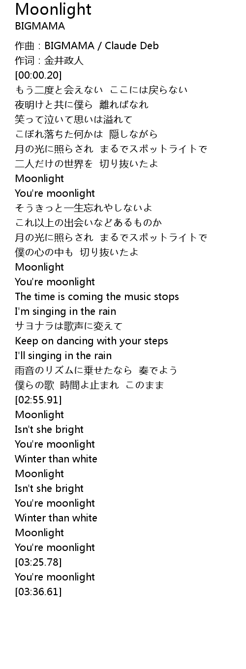 | [00:00.00] | 作曲:BIGMAMA / Claude Deb |