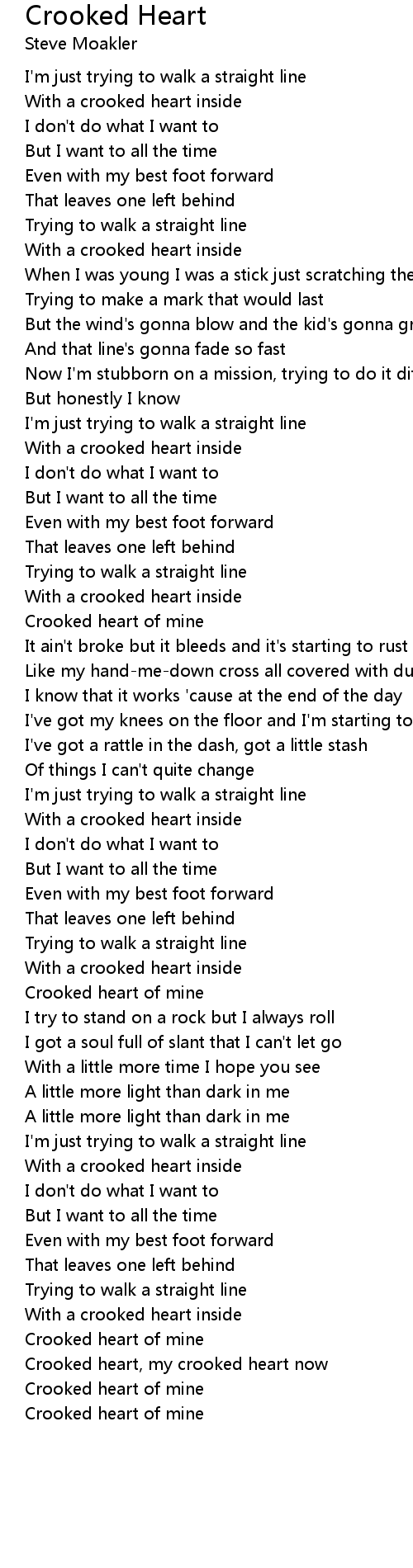 Crooked heart, my crooked heart now |