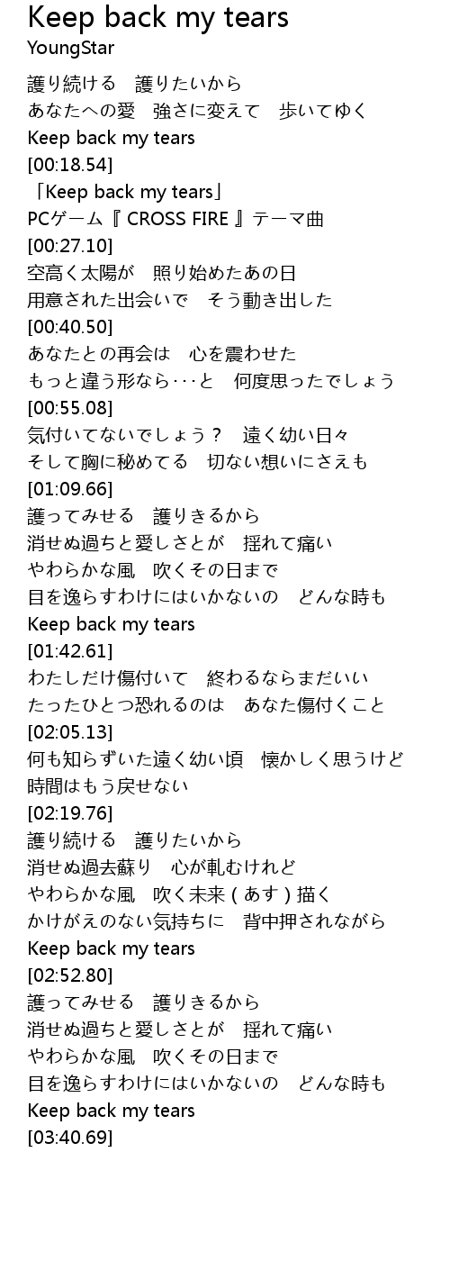 | [00:20.01] | 「Keep back my tears」 |