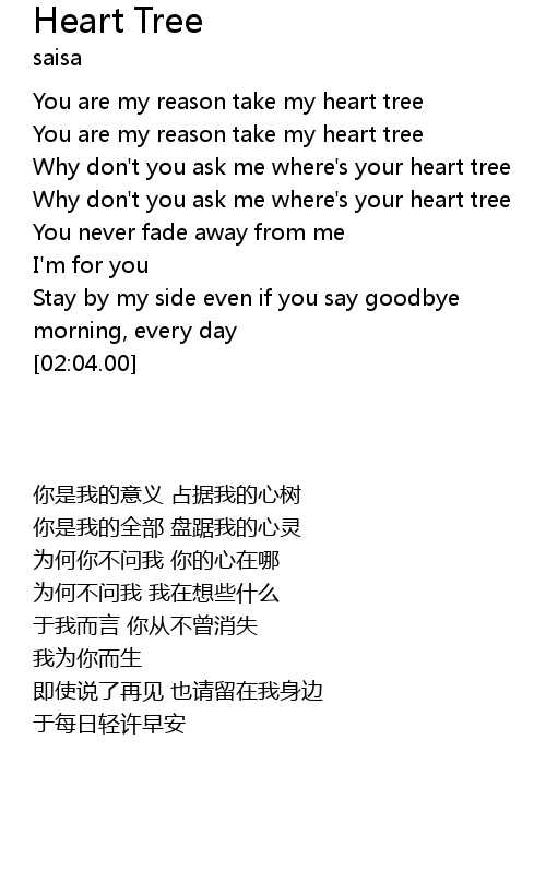 | [01:06.00] | Why don't you ask me where's your heart tree |