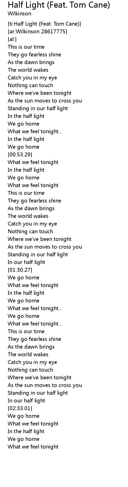 [ti:Half Light (Feat. Tom Cane)] |
