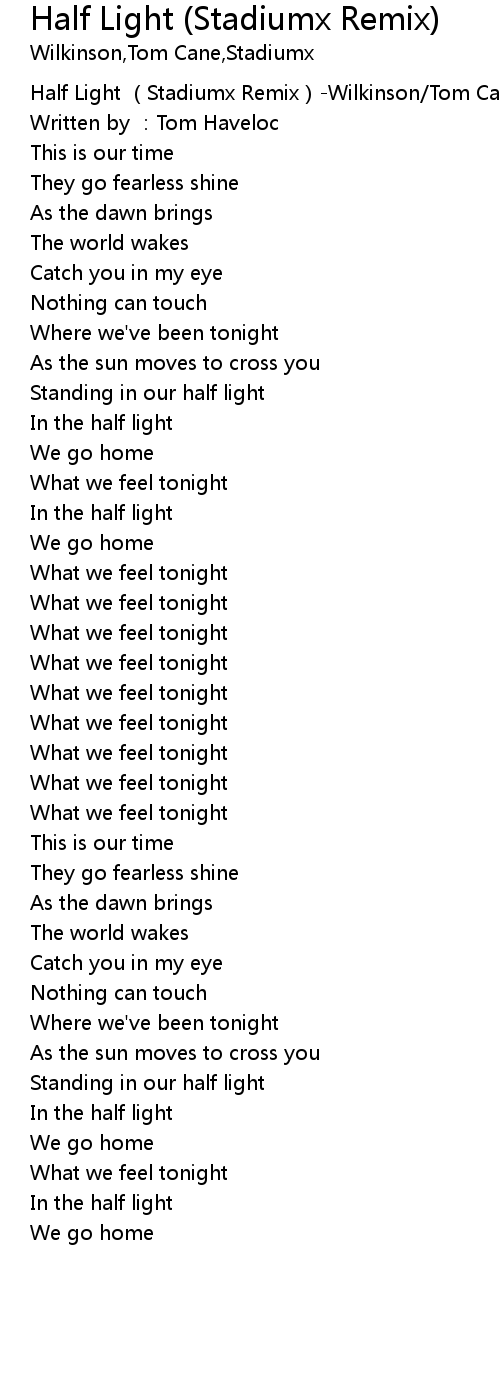 | [00:00.212] | Half Light Stadiumx Remix Wilkinson Tom Cane |
