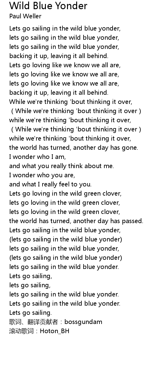 | [02:32.152] | (lets go sailing in the wild blue yonder) |