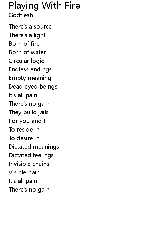 | Song | Playing With Fire |