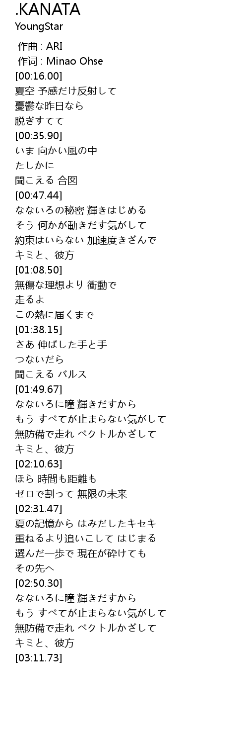 | [02:00.11] | 無防備で走れ べクトルかざして |