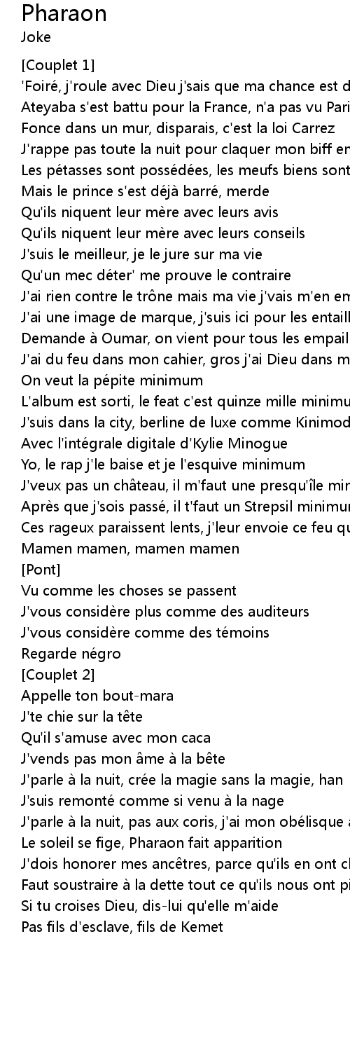 | J'parle à la nuit, pas aux coris, j'ai mon obélisque à Paris | |