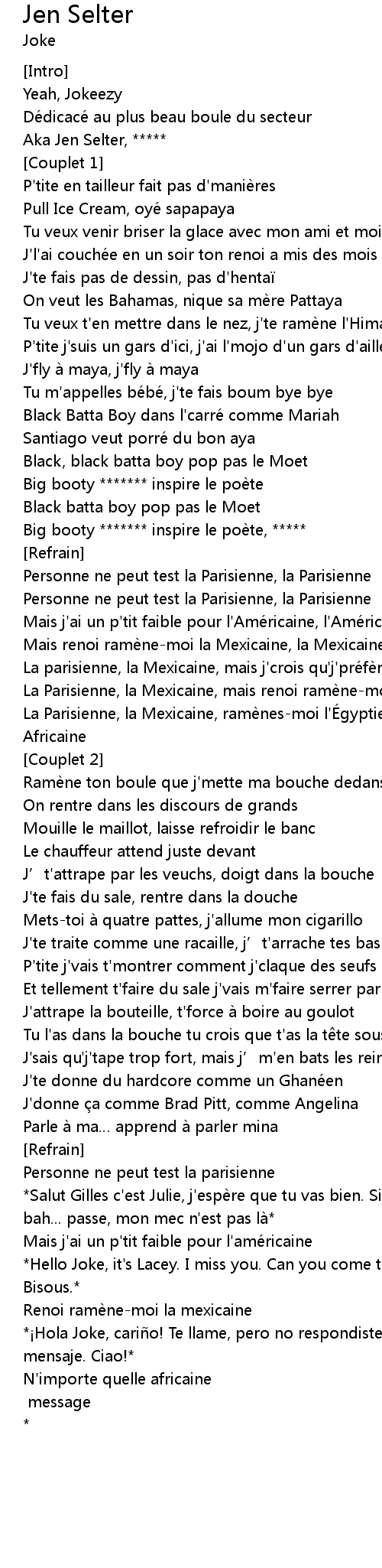 | La parisienne, la Mexicaine, mais j' crois qu' j' pre fe re l' Ame ricaine | |
