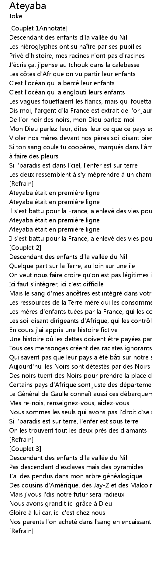 | Dis moi, l' argent d' la France est extrait de l' or jaune des noirs | |