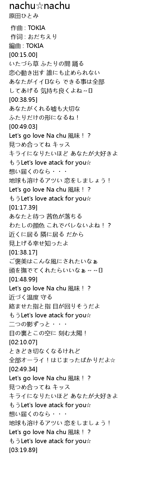 | [03:02.63] | もうLet's love atack for you☆ |