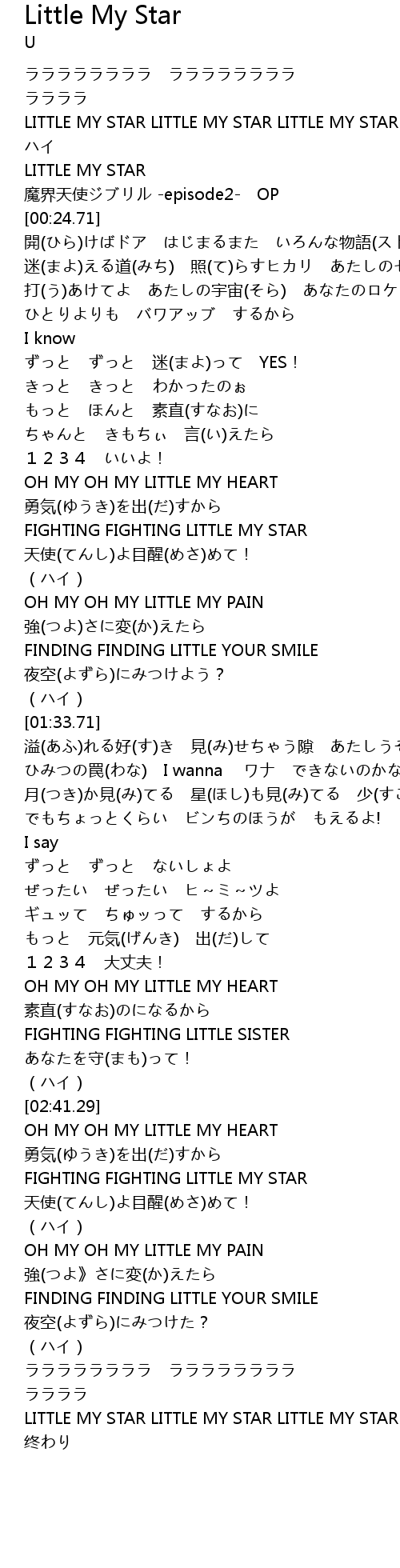 | [00:10.93] | LITTLE MY STAR LITTLE MY STAR LITTLE MY STAR |