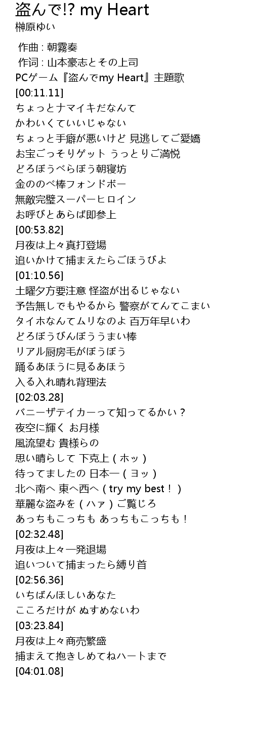 | [00:07.75] | PCゲーム『盗んでmy Heart』主題歌 |