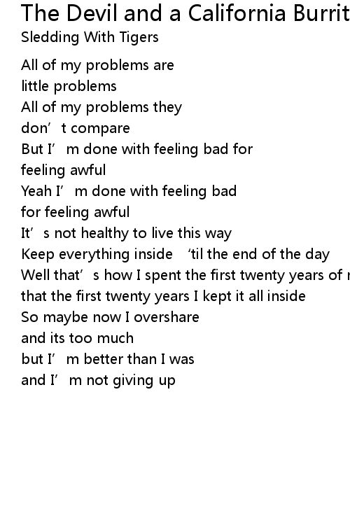| Song | The Devil and a California Burrito are Raging Inside Me |