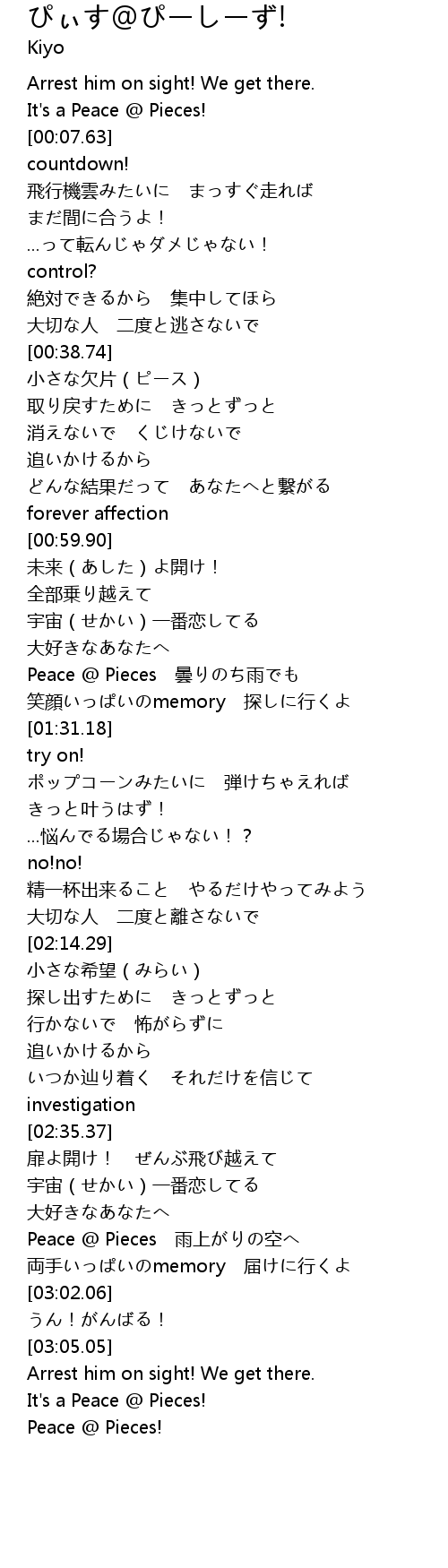 | [02:47.95] | Peace @ Pieces 雨上がりの空へ |