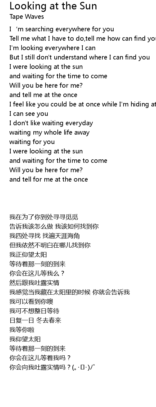 | [01:51.27] | I feel like you could be at once while I' m hiding at the sun |