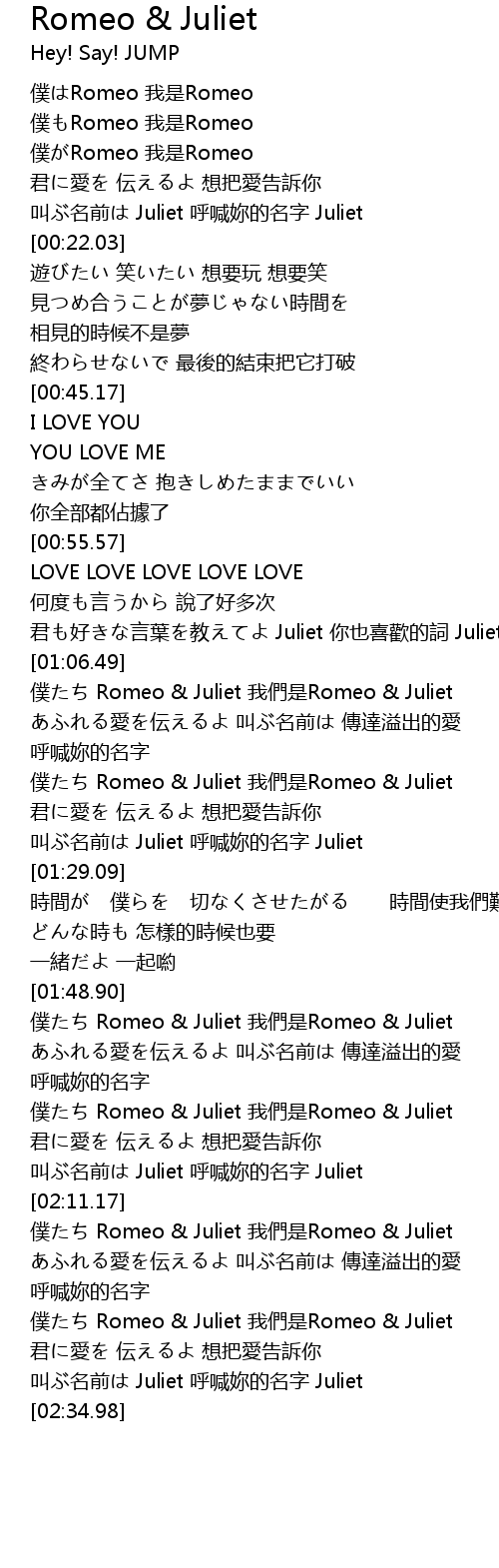 | [02:23.34] | 僕たち Romeo & Juliet 我們是Romeo & Juliet |