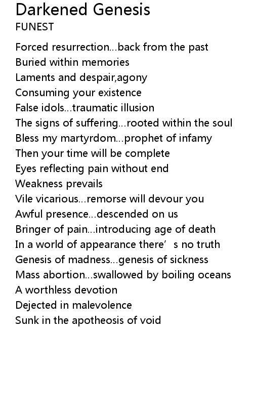 | Song | Darkened Genesis |