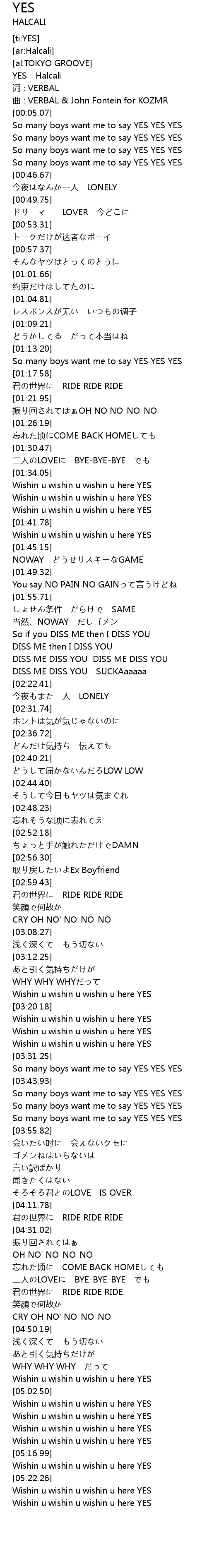 | [00:00.44] | YES - Halcali |