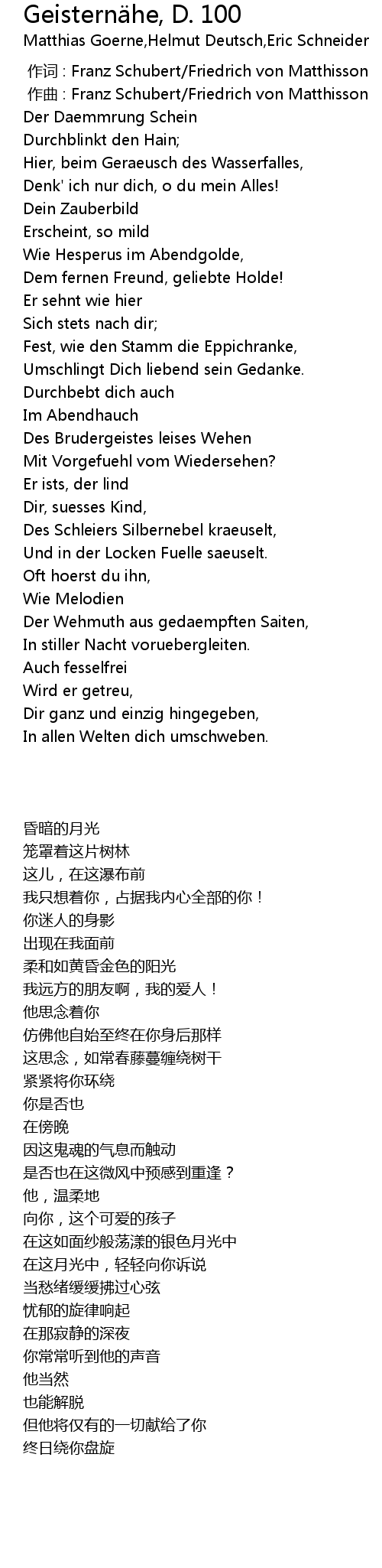 | [00:01.000] | zuò qǔ : Franz Schubert Friedrich von Matthisson |
