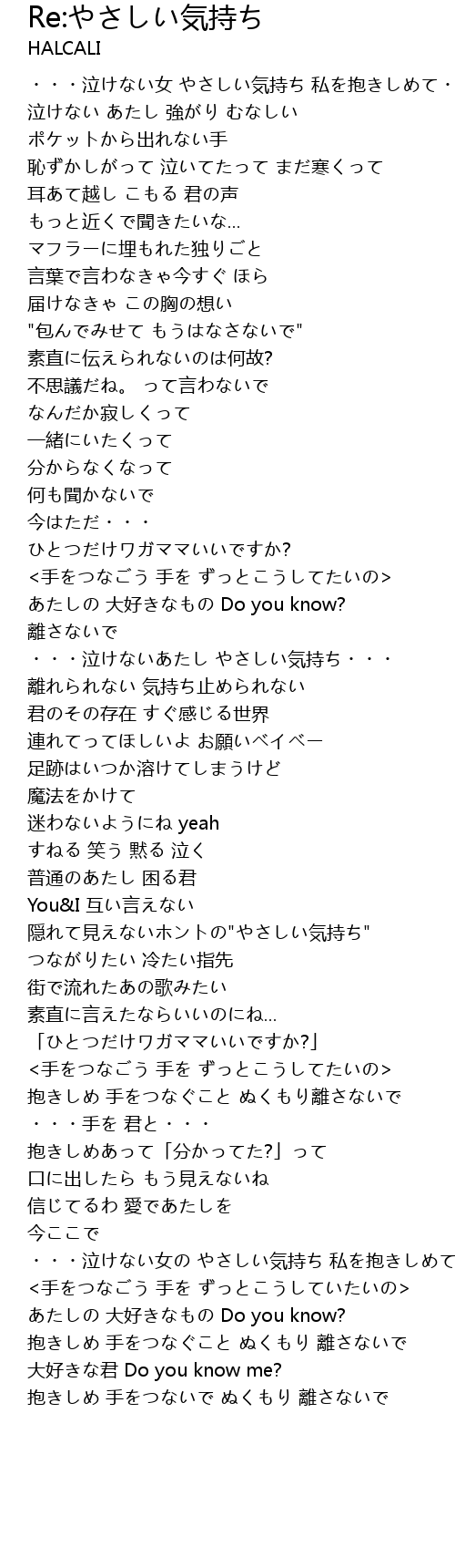| 抱きしめ 手をつなぐこと ぬくもり 離さないで | |
