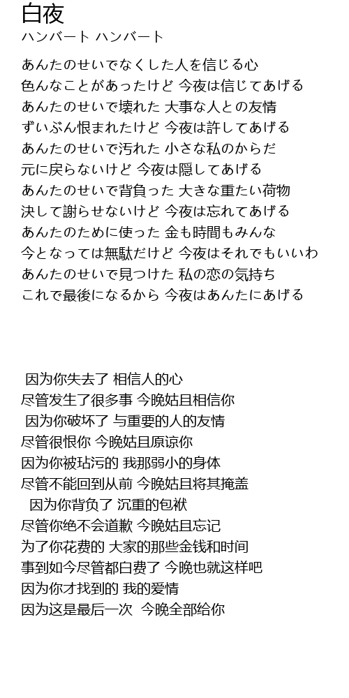 これで最後になるから 今夜はあんたにあげる |
