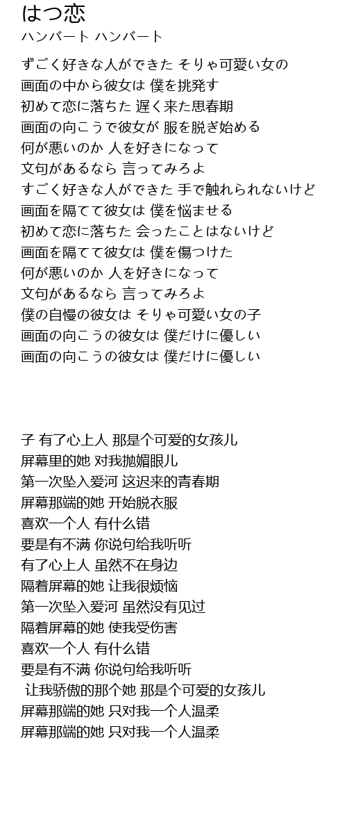 | [00:23.97] | 初めて恋に落ちた 遅く来た思春期 |