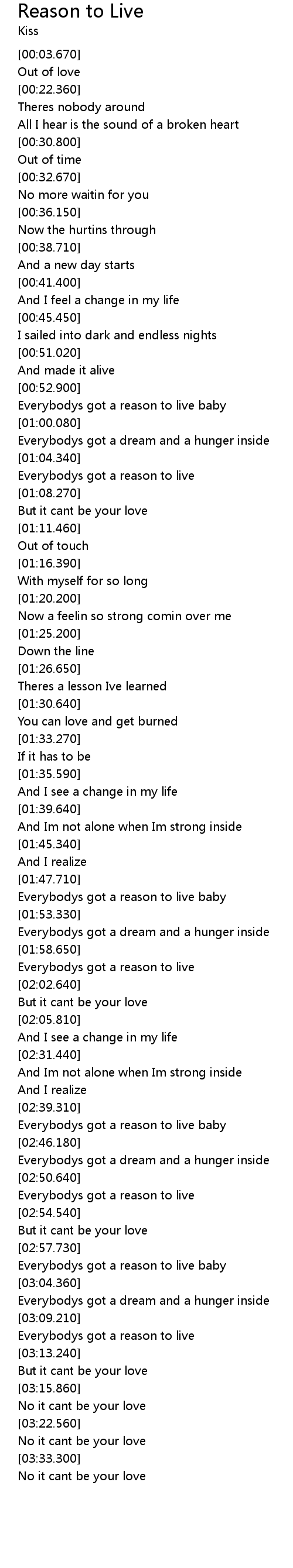 | [03:11.270] | Everybodys got a reason to live |
