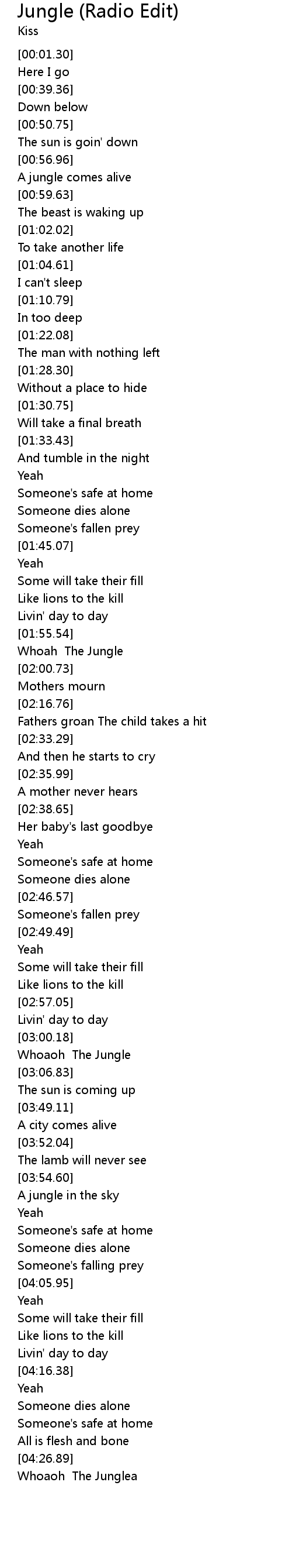 | [01:56.93] | Whoah The Jungle |