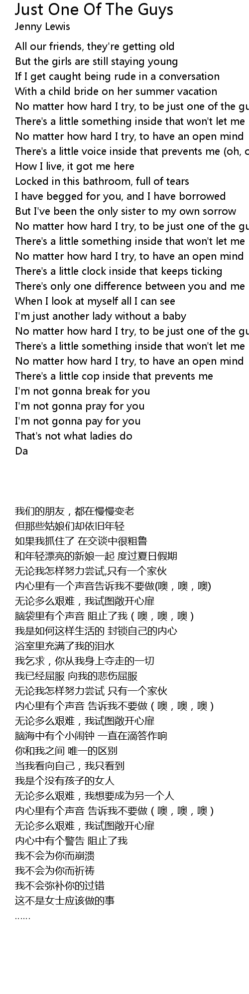 No matter how hard I try, to be just one of the guys |