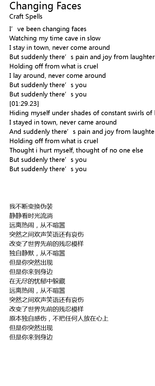 | [00:49.52] | I' ve been changing faces |