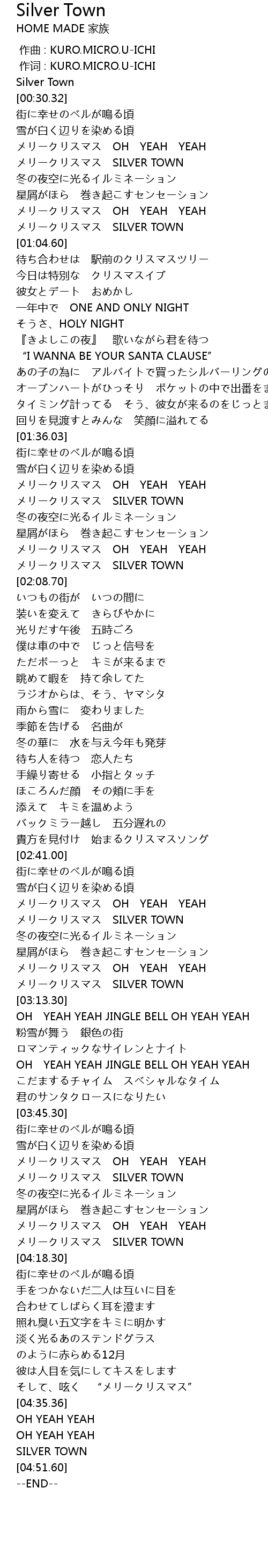 | [03:59.01] | メリークリスマス SILVER TOWN |