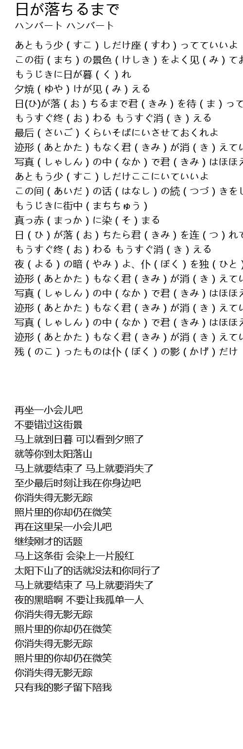 | [00:47.460] | 日(ひ)が落(お)ちるまで君(きみ)を待(ま)っててあげよう |